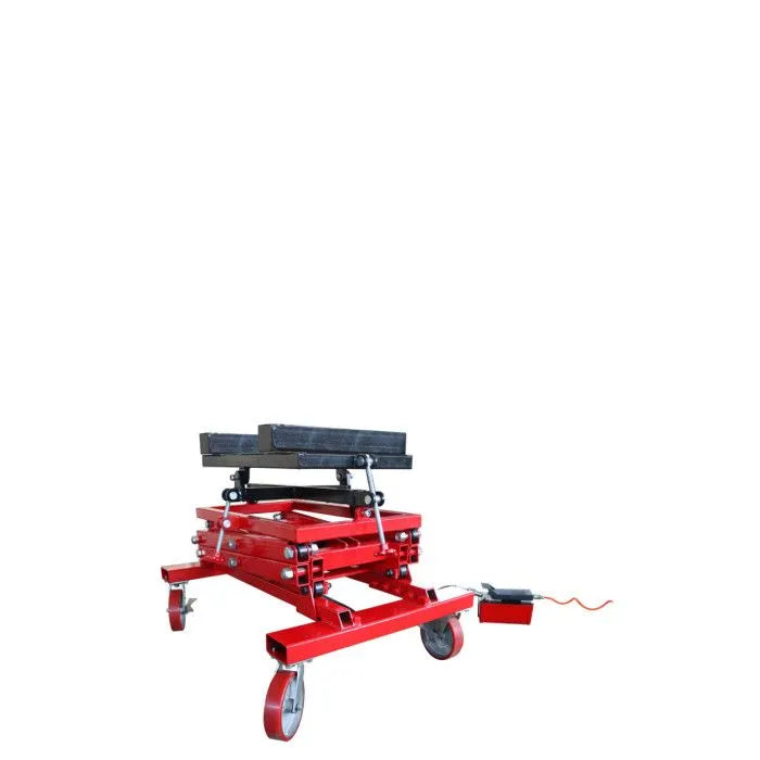 The AFF 3182 Power Train Lift Table handles transmissions and fuel tanks as well as engines, transaxles, large electric vehicle batteries, and more. It also serves as a work table where components can be lowered to a stable and secure work height for on-site repair.