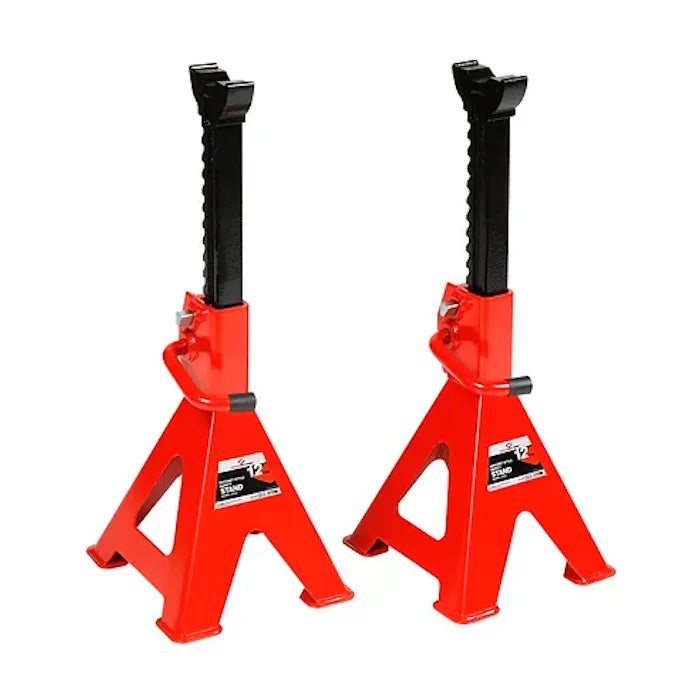 The AFF 3312C 12-Ton Medium Ratchet Style Jack Stands are constructed with high-grade forged steel for maximum durability and can support the load of a wide range of vehicles including cars, SUVs, and light-duty trucks. – A wide pyramid base provides stable support while welded foot pads keep the stands from sinking into soft ground or asphalt. Ratcheting teeth lock into place and provide multiple height adjustments. A large saddle provides a generous surface area for improved contact with the load. Sold In Pair.Features