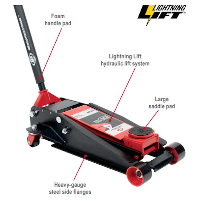 The American Forge & Foundry 400SS 4-Ton Heavy-Duty Floor Jack features the Lightning hydraulic system for an effortless stroke and quick lift. Constructed with high-strength steel for maximum stability, these jacks are built for rugged everyday use and designed with the professional service technician in mind. Quick and efficient lifting, this 4 ton heavy duty floor jack has rear mounted swivel casters for easy maneuvering and pump, ram, cylinders are precision machined and inspected to ensure long service life. Uncompromising quality, better productivity and great value this is the heavy-duty jack favored by automotive service pros!