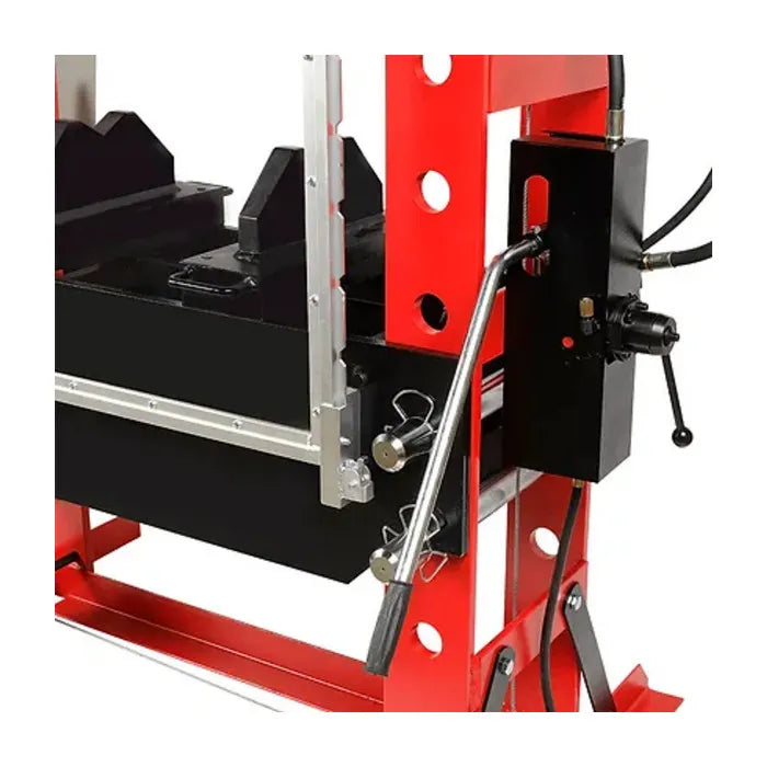 American Forge & Foundry Super Duty Shop Presses are constructed with a fully welded frame and heavier gauge steel for exceptional strength and durability. A lateral head adjuster provides smooth side to side movement of the press head which adds versatility that you won't find with other standard duty shop presses. Optimal use of shop press is 80% of rated capacity or less.- Fully Welded Construction For Exceptional Strength And Durability