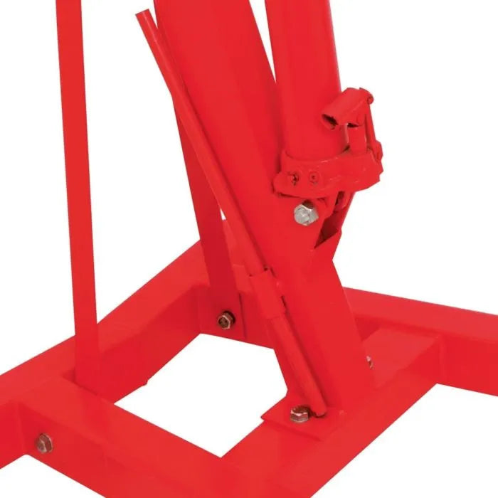 Most typical engine lifts are only rated at 2,000 lbs. capacity. Not this one. It's rated at a whopping 6,000 lbs. capacity. This product was made specifically for commercial truck and bus service. AFF takes the feedback they receive from mechanics and auto shop owners and puts it back into their products. The features that are most important to true professional technicians can be found on this heavy duty engine crane. This is why they are our most popular hoists. Boom can extend and retract to a wide range of 4 different length settings. Hydraulic cylinder comes with overload protection and seals won't leak after a few months. Hydraulic cylinder is rated at a hefty 12 tons, so any job is possible. Heavy gauge steel construction throughout with reinforced legs provide maximum durability to resist torque and twisting in extreme situations. Plus, you get the reliability that only AFF can offer. They make some of the finest automotive equipment on earth. The AFF 3584 Heavy-Duty 3 Ton Engine Crane is constructed with reinforced leg assemblies for added strength and durability. The 3584 features four different boom settings, a 12 ton hydraulic ram with built-in safety overload, and oversized 4-1/4" rear swivel casters and 6" fixed front wheels. These are just some of the features that make this engine crane the preferred choice by professionals who depend on strength, speed, and dependability to get the job done right.
