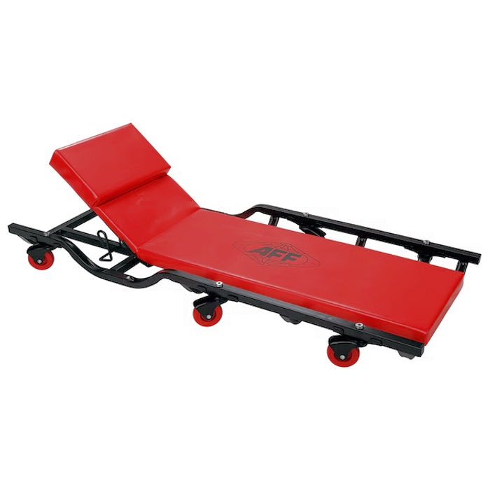 The American Forge & Foundry 3908A 40" Angle Head Six Wheel Creeper allows you to maximize both productivity and comfort when working in your shop or garage. The adjustable head rest is built with 3 stop positions at 15°, 30° and 45° to allow for a wide range of work applications. The drop rail design provides extra working space and additional shoulder and arm clearance. Featuring a 400 lbs. capacity and six professional-grade polyurethane swivel casters that are resistant to most shop chemicals ensures effortless travel across the shop or garage floor. Fully padded bed is made with a 1.4" high-density foam material that delivers superior comfort. Powder coated finish provides maximum durability and long shop life. The standard AFF (1) Year Warranty applies with over 300 service centers nationwide.Established in 1963, American Forge & Foundry has built a long-standing tradition of providing premium quality products, exceptional service and outstanding value. Available through our network of distributor partners, our products can be found in heavy duty and automotive repair shops, military sectors, agriculture, and other demanding industries. From our extensive inventory of parts to the hundreds of service centers available nationwide our experienced team is committed to ensuring that the AFF brand stands for durability, safety, and customer care.