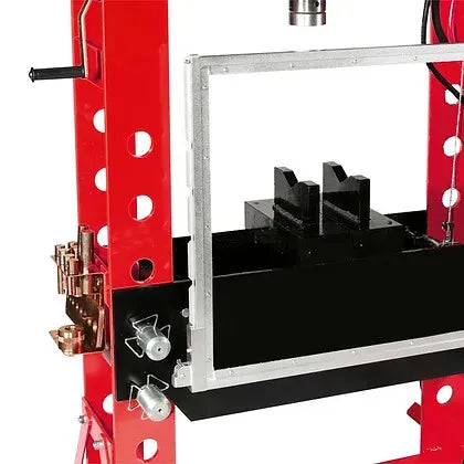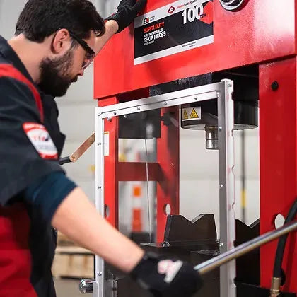 American Forge & Foundry Super Duty Shop Presses are constructed with a fully welded frame and heavier gauge steel for exceptional strength and durability. A lateral head adjuster provides smooth side to side movement of the press head which adds versatility that you won’t find with other standard duty shop presses. Optimal use of shop press is 80% of rated capacity or less.