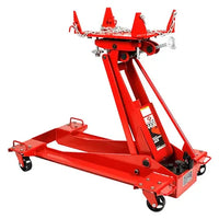 If you've been searching the heavy truck transmission jack market out there, you've probably encountered a lack of any truly super heavy duty options. We don't know why most manufacturers haven't decided to offer something like this, but for whatever reason, not many have. But AFF does. They're smart enough to see a niche in the market, and are able to fill it. This model has a beefy steel frame for maximum strength and a tough 4400 pounds capacity. The swiveling casters are able to smoothly roll across concrete garage floors easily, helping technicians to remove, transport and install heavy duty transmissions, along with differentials, transfer cases, and a variety of other objects. Perfect for use on buses, trucks, agricultural and construction equipment and machinery. That's why AFF is one of the premier names in automotive equipment.