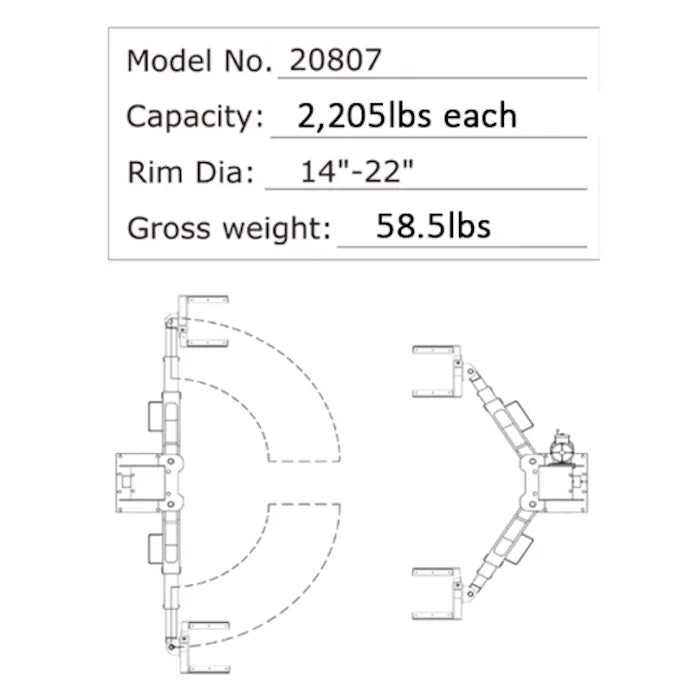 When used as a set of four, the AMGO 20807 Adjustable Wheel Support Adapter can fast transform a two post lift from chassis-support to wheel-support. This wheel adapter is easy to fix or remove on all AMGO two post lifts and most two post lifts on the market with 1-1/2" to 2" arm holes. Adapter is best suited for 14"-22" wheel diameters. Includes super-durable non-slip rubber pad to help protect the tires. This wheel adapter provides a wide serviceability for various vehicles from EV to full-size SUV, and even for 4-wheel turf equipment. These adapters are especially handy for EV maintenance, battery pack replacement, and low chassis vehicles. Sold Individually.