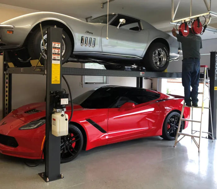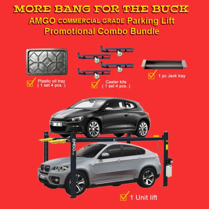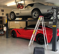 The AMGO 408-P is a true space-saving powerhouse. It is the perfect service lift for shops and home car ports with limited floor space with performance maximization in mind. The 408-P requires no special foundation or complicated installation and is about the size of a typical parking space. These features, and more, make the AMGO 408-P one of the best commercial or private use lifts in the world. The 408-P is the perfect choice for commercial shops or residential car ports trying to save space with a capacity of 8,000 lbs.ALL ACCESSORIES ARE SOLD SEPARATELY - Optional Parts Include: