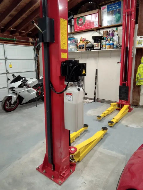 - 10,000 lbs. capacity, commercial grade 2-post base plate lift is designed and built for any professional shops and home garages to fit low ceiling workshop environment without overhead obstructions