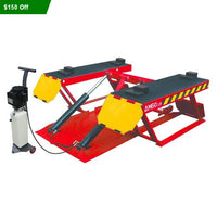 AMGO's LR10 Portable Low-Rise Scissor Lift is an excellent choice for low ceilings or adding a bay for seasonal increases in business. Provides good working height for tires, brakes and body repairs.Features & Specs