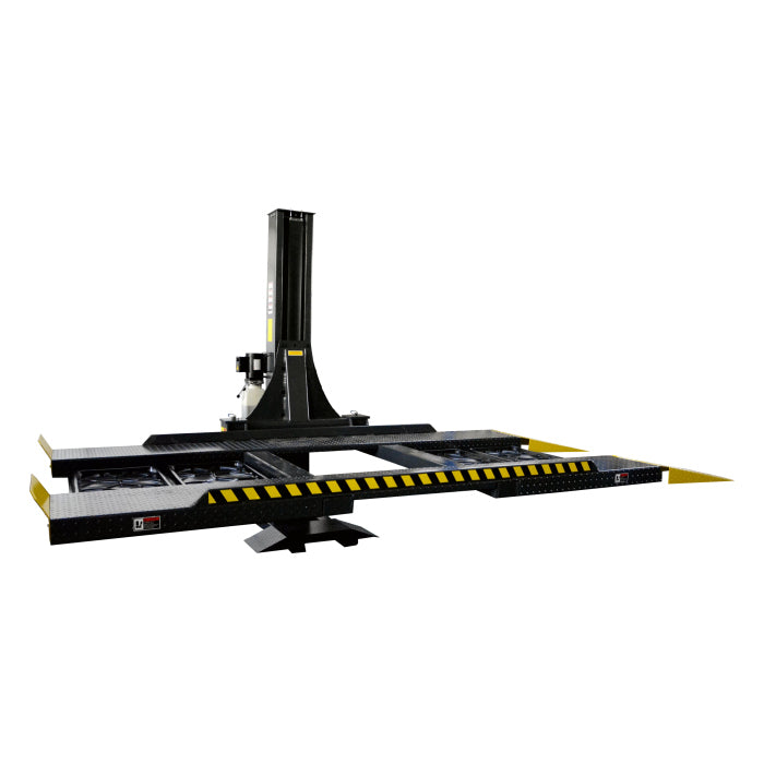 AMGO's SPL-6 Single Post Parking Lift is our newest single post parking lift. This lift combines AMGO high quality with space saving design and easy operation. This single post parking lift has a non-slip lifting platform, manual safety lock release, and h-shaped lifting platform with reinforced column. It includes reversible drive in ramps and wheel stops which allow the vehicle to be driven in from either side. It is available in 110V with a 1HP motor or 220V with a 2HP motor. The SPL-6 is a great fit for commercial shops and it's low post height for low ceilings makes it perfect for home garages. It also comes with the AMGO 5/3/2 Warranty. Optional Aluminum Alloy Drive In Ramps and Drip Trays are available.