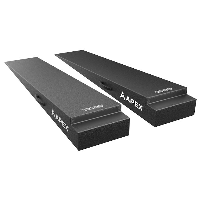 Steel ramps are strong but heavy. Aluminum is lighter but still a fight. APEX ramps use a solid, lightweight high-density EPS structural foam core that changes the math. The foam core spreads weight through the body instead of concentrating it at thin contact points. The outer skin is a tough, textured coating that locks to the core and grips tires and floors. Don't dread the setup. Grab an APEX ramp, drop it where it belongs and get on with the work.