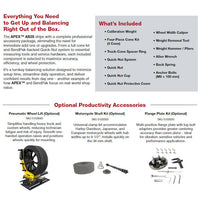 Both machines include comprehensive wheel protection components as standard equipment, reducing the risk of cosmetic damage when servicing painted, machined, or clear-coated wheels.