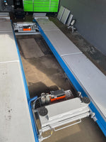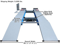 Once a vehicle is positioned on the Atlas scissor alignment lift, the optional Atlas RJ-6 rolling jack can lift the vehicle off of the runways to perform wheel service. The air powered hydraulic Atlas RJ-6 rolling jack has telescoping arms that extend over the runways to access lift points. These jacks have screw out extensions or optional stack on truck adapters.