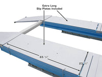 Built-in extra long slip plates allow for aligning of wheelbases from 172" to 86".