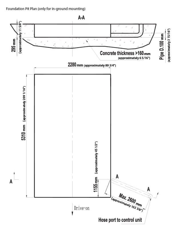 All Atlas scissor alignment lifts can be surface mounted or flush mounted. Each lift comes with approach ramps for the floor mounted application or an optional set of ramps if the customer decides to flush mount the lift. The extra high lifting height allows this scissor alignment lift to be flush mounted and still offer plenty of room under the runways to properly access the underside of the vehicle.