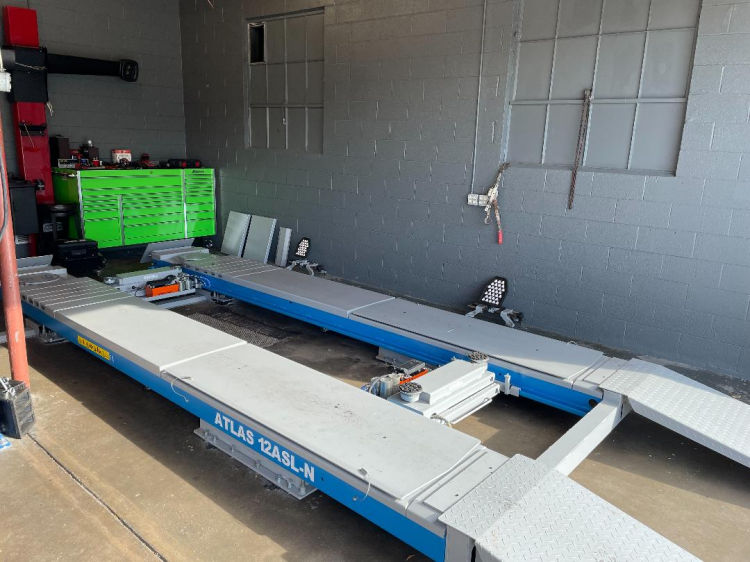 The Atlas 12ASL-N 12,000 lbs. Commercial Grade Scissor Alignment Lift allows the customer to utilize a minimum amount of space and still be able to align the smallest foreign car all the way up to a one ton dual rear wheel pickup truck.