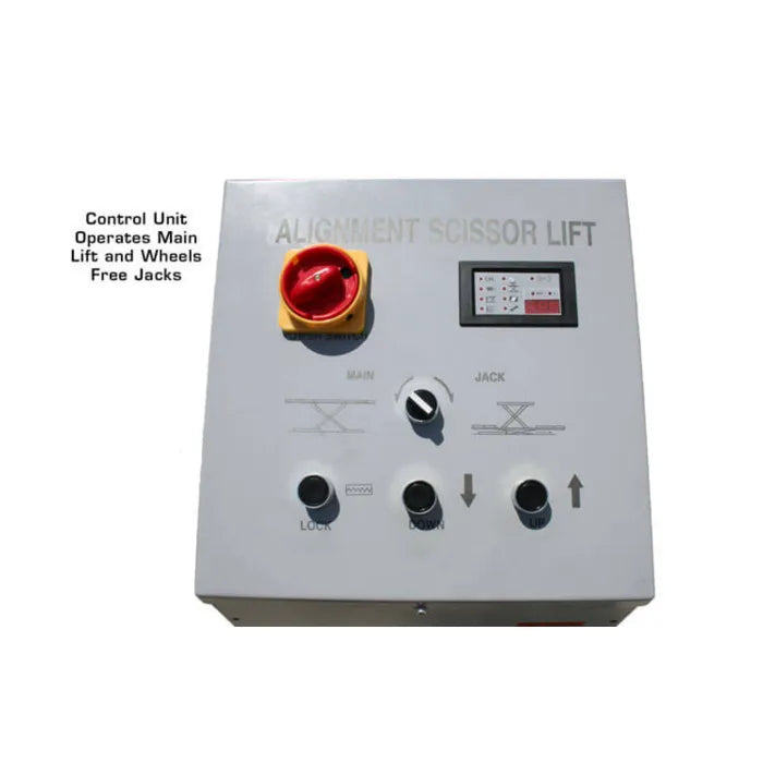 The Atlas 12AWFSL 12,000 lbs. Scissor Alignment Lift has all the same features as the Atlas 12ASL lift but with the addition of built in runway lifts known as the "Wheels Free" lifting system. When a vehicle is loaded on the 12AWFSL lift the "Wheels Free" jacks will raise a vehicle by the frame, lifting it so the wheels come off the runways for easier access and to facilitate alignments. The "Wheels Free" jacks are conveniently controlled at the lifts control console. The Atlas 12AWFSL has a lifting height of over seven feet so that it may be floor mounted or recessed in the floor for flush mounting. The full frame under the scissor lift provides for maximum stability.