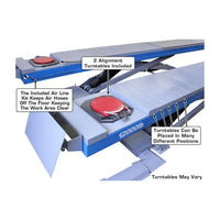 Includes Alignment Turntables, Turntable Covers, Extra Long Slip Plates, Airline Kit, Rubber Lifting Pads, and Mounting Hardware.