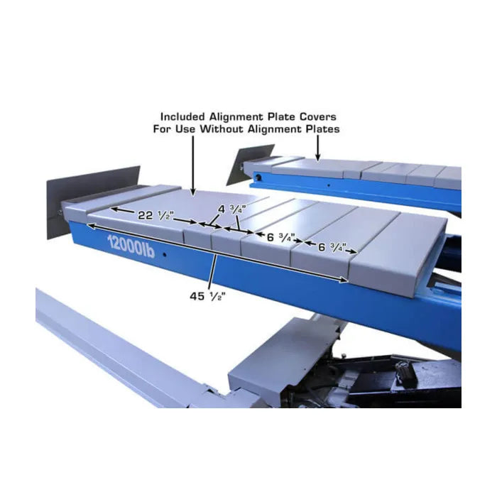 The 12AWFSL scissor alignment lift can be surface mounted or flush mounted. Each lift comes with approach ramps for the floor mounted application or an optional set of ramps if the customer decides to flush mount the lift. Check the technical specifications to better understand how the extra high lifting height allows the Atlas 12K scissor alignment to be flush mounted and still offer plenty of room under the runways to properly access the underside of the vehicle. The extra long 71" long approach ramps make it easy to load low riding vehicles.