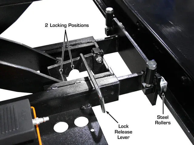 Accommodates A Wide Variety of Wheelbases:This alignment lift includes a set of front turntables. The turntables may be moved into two different positions, allowing the customer to perform both two wheels and four wheels alignment on the shortest and longest of vehicles. This lift also includes metal turntable cover plates (that cover the cut-outs for the turntables) so that the vehicle is not sitting on the turntable if the lift is not being used for alignment.