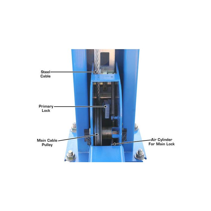 The Single Point Air Operated Lock Release was designed for the Atlas Lifts and offers many more features than the locking systems on other four post lifts.
