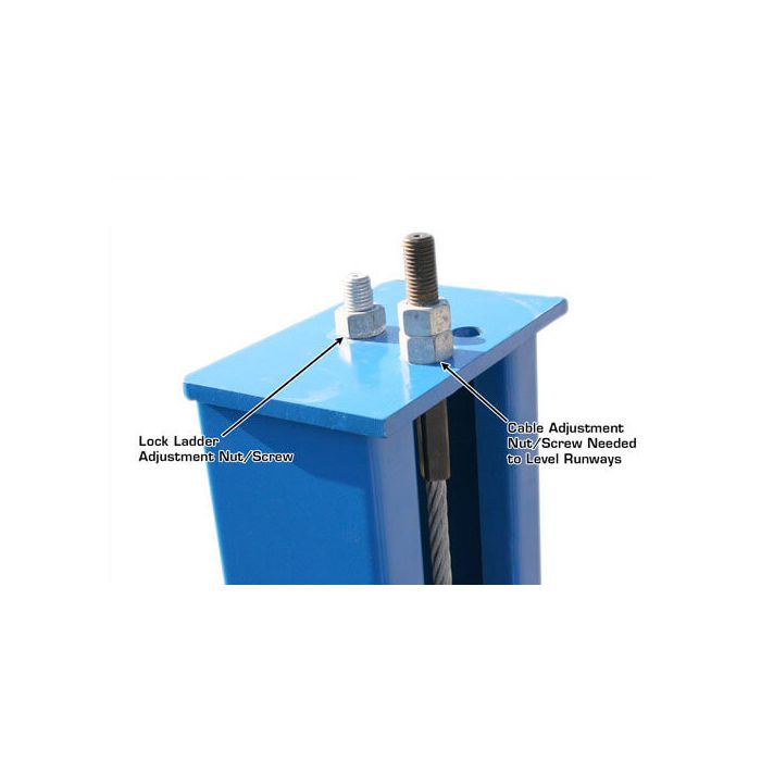 This Atlas Lift has a commercial grade lock ladder. We believe that the lock ladder system is the safest locking system for any four post lift. The lock ladder system also provides an infinite number of runway locking positions. The "old-style" welded locks could not be adjusted. The lock ladder is adjustable inside the column so that our customers can "micro-manage" the correct runway height to accommodate any vehicle. The "lock ladder" column system is the same column system found on professional grade lifts found in car dealerships and automotive service centers.