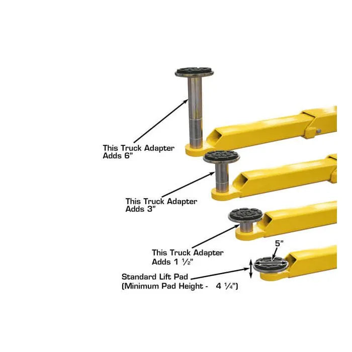 When properly installed, the Atlas LMA can transform most two post above ground lifts into an economical four wheel support lift that will accommodate wheel bases from 32" to 90". The Atlas LMA plates can be positioned ONLY on two post lift arms that offer symmetric arm configuration.