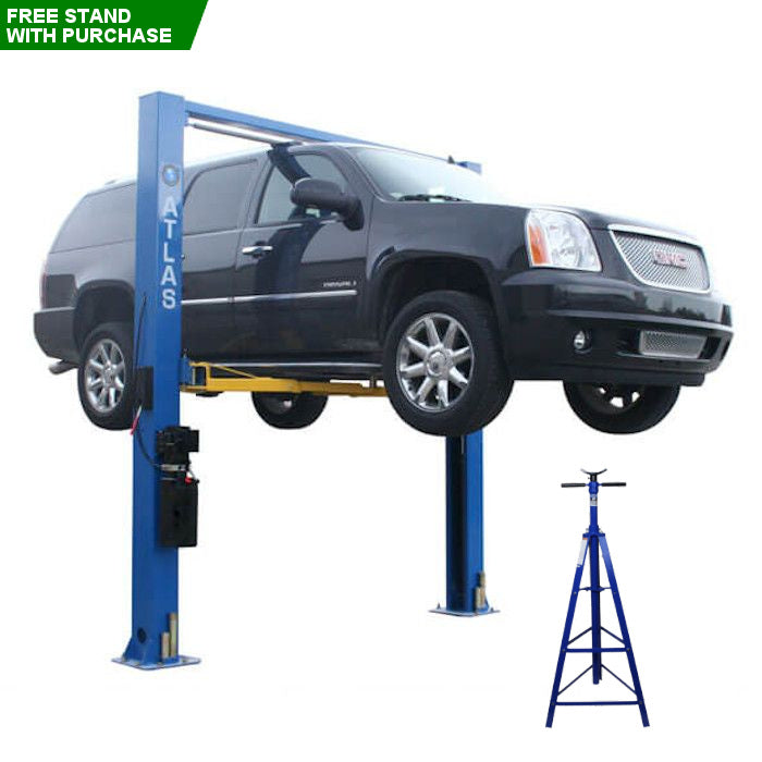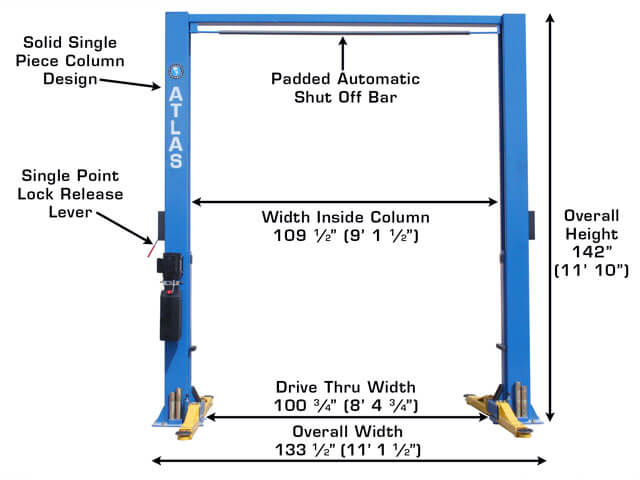 The Atlas 9OHSC two post above ground lift is the perfect choice for those smaller commercial repair facilities or The Mr. Homeowner who demands the highest quality at the absolute best price. The Atlas 9OHSC is a TRUE 9,000 lbs. capacity two-post lift that offers a great value to the customer. The Atlas 9OHSC is engineered and manufactured to lift vehicles ranging from Smart Cars to a Suburban.