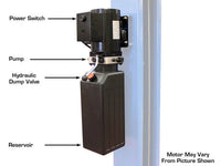 The electric motor for the power unit requires 220 Volt (single phase) 60 Hz (+/- 5%, so 209-231 volts). We recommend using at least a 10 gauge (grounded) wire from the electrical panel. The power unit may or may not have a short pigtail (no plug) that can be wired to either an optional quick disconnect box (mounted on the lift column) or to a male/female plug combination. A 30 amp breaker is required.