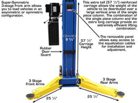 The padded shut-off bar located below the cross beam prevents the top of the vehicle from being damaged by hitting the cross beam. The padded bar, which contacted automatically shuts off the motor on the power unit to prevent the vehicle from being lifted.