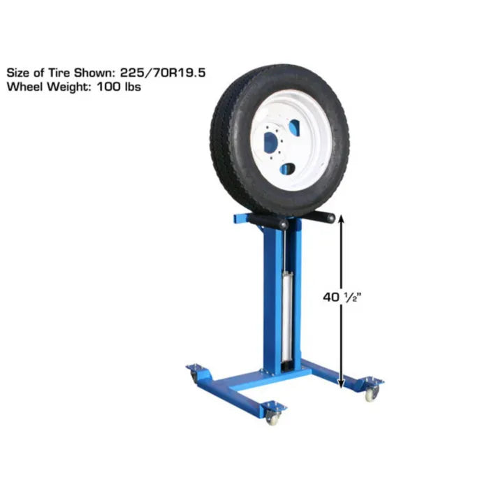 The Atlas AEZWL Pneumatic Portable Wheel Lift is the perfect solution to prevent back injuries when lifting large wheel assemblies onto the shaft of a wheel balancer, onto a tire changer turntable, or even removing or installing tires on a car raised on a scissor or two post lift.