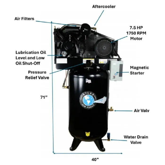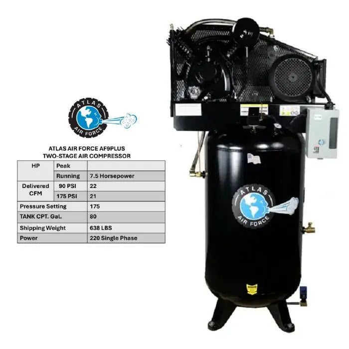 Atlas AF9P Two Stage 7.5HP 80 Gallon Air Compressor Plus Pkg