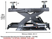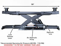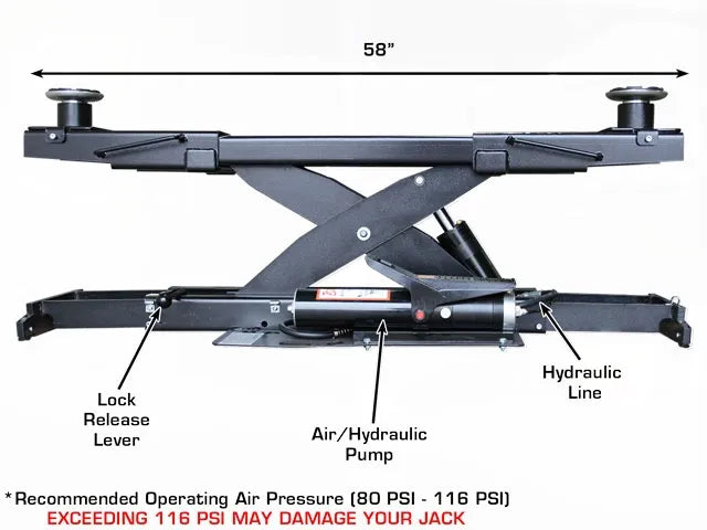 IMPORTANT: The Atlas AP-RJ7000 is designed and engineered to operate on "delivered" air pressure of between 70-115 PSI. If you exceed 115 PSI, you may damage your jack.
