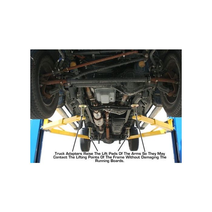 This lift comes standard with a twelve piece truck adapter set. The twelve piece truck adapter set offers many more lift height combinations than standard two piece truck adapter sets.