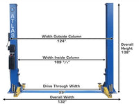 The Atlas BP8000 is a base-plate two-post lift designed for low ceiling garages. The total column height of 108" (9 feet) allows this lift to be installed in almost any professional or home garage with a ceiling as low as 9 feet 3 inches. The current model of BP8000 now comes with 3-stage rear arms instead of the old 2-stage, giving more flexibility to your lifting points.
