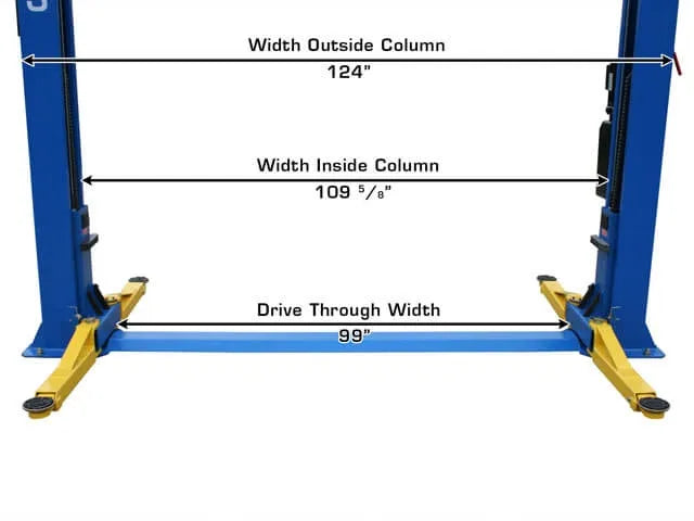 The Atlas BP8000 is a base-plate two-post lift designed for low ceiling garages. The total column height of 108" (9 feet) allows this lift to be installed in almost any professional or home garage with a ceiling as low as 9 feet 3 inches.
