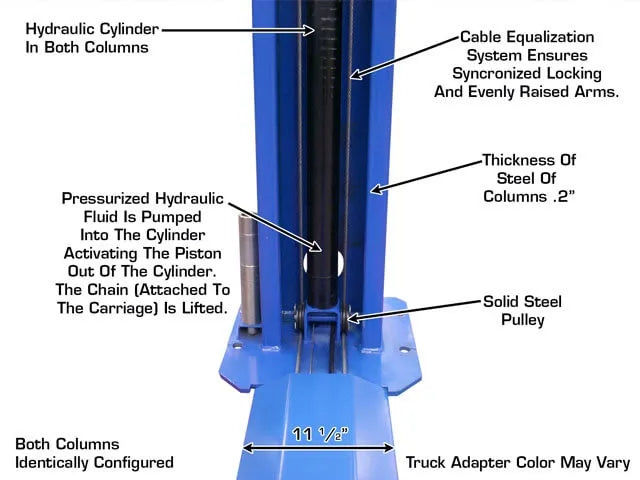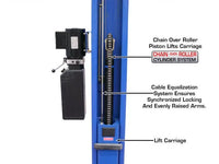 The Atlas BP8000 features a single-point lock release, automatic arm restraints, super symmetric arms, double safety lock system, powder coat finish, and heavy-duty dual hydraulic chain-drive cylinders (one cylinder in each column).