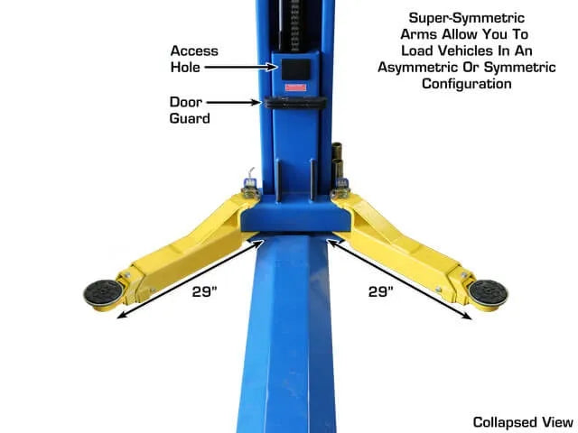Super Symmetric Arm Configuration - Our super symmetric arm configuration is a great improvement over the traditional asymmetric or symmetric arm configuration. Our most asked question about our arm configuration is: "Can I get in and out of the vehicle easily"? The Atlas super symmetric arm configuration allows the customer to get in and out of the vehicle with ease. The real question should be; "Can I position the arms properly (arm pads under the correct lift points) and still get in and out of the vehicle easily"? The Super Symmetric arm design answers "YES" to this question.