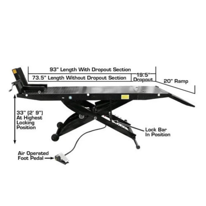 - 93" Extended Table Length Accommodates Extra Long Motorcycles