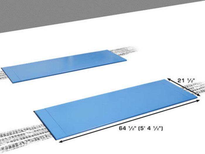 The flush mounted platforms offer no above ground obstruction and the platforms can be driven over from any direction so that a vehicle may be properly positioned in the tightest of spaces.