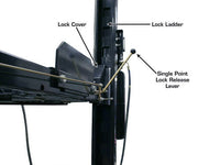 Single Point Lock Release - This Atlas Storage Lift has a manual single point release that allows the operator to release all the safety locks at one time. The spring loaded lock handle and power unit dump valve must be activated at the same time. (two hand operation) If the lock handle is released and the dump valve handle is still being pressed, the lift will continue to descend and all locks will automatically re-engage at the next lower lock point.