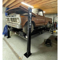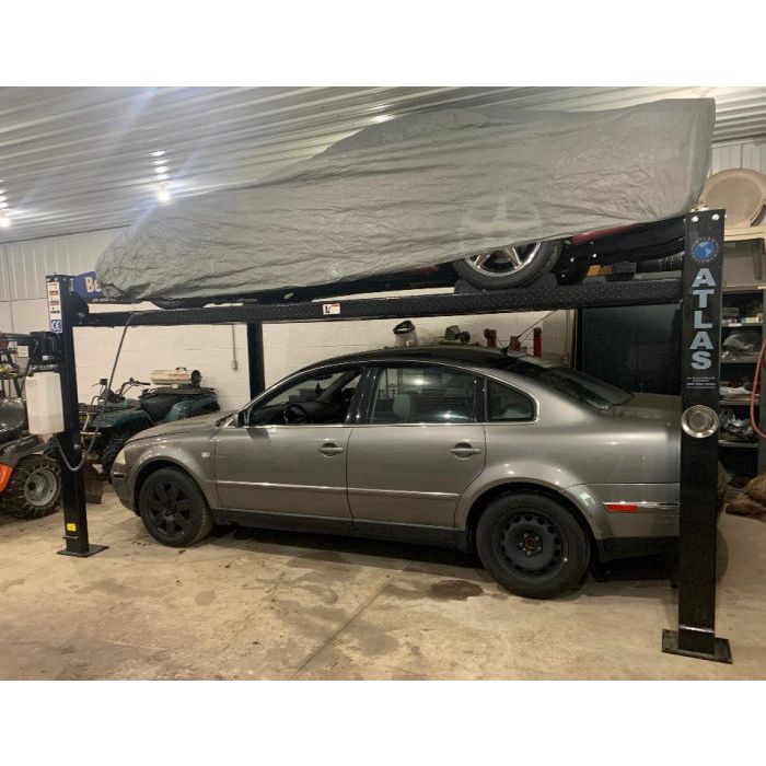 The Atlas Garage Pro 8000 EXT-L in an extra long and slightly wider Service / Storage Lift. This lift is 20 inches longer (wheelbase) and 3 inches wider than the Atlas Garage Pro 8000EXT. Or to compare to the original, this lift is 20 inches longer (wheelbase), 3 inches wider, and 14 inches taller than the Atlas Garage Pro 8000! The extra runway length will accommodate almost all of the longer wheelbase pickup trucks, except duallys. Check out the Atlas Garage Pro 9000 if you need a portable lift for your dually!