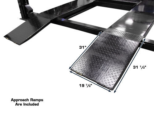 Includes Approach Ramps - The included steel approach ramps can be easily removed by raising the lift to waist height, then lifting the ramps out. Each steel approach ramp weighs 46 lbs.