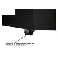 This is a complete motorcycle/ATV lift and besides the features above includes an adjustable front (padded) wheel vise and a removeable rear drop out section. The Atlas HI-RISE 1500 has a wide solid base for greater stability and which incorporates screw casters that can be lowered to move the lift and retracted when working.