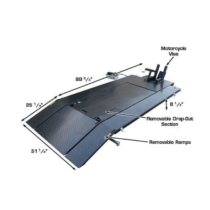 - 99 3/4" Extended Table Length Accommodates Extra Long Motorcycles