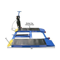 The Atlas LR06 Portable Low-Rise Scissor Lift with 6,000 lbs. capacity is the perfect addition to any garage that needs a quick sure fire method to raise a car to perform wheel service or body work. The LR06 low rise lift comes with rubber pads on the lifting surface. Multiple lock positions and a unique self actuating lock bar allow the operator to perform wheel service at a comfortable working height.Simply drive the car over the Atlas LR06 and position the rubber blocks (if needed) under the correct lifting points of the vehicle. Press the button on the unit and lift the vehicle to the desired work height. Depress the "dump valve lever" on the power unit and the lift lowers slightly to the next lower mechanical lock position.