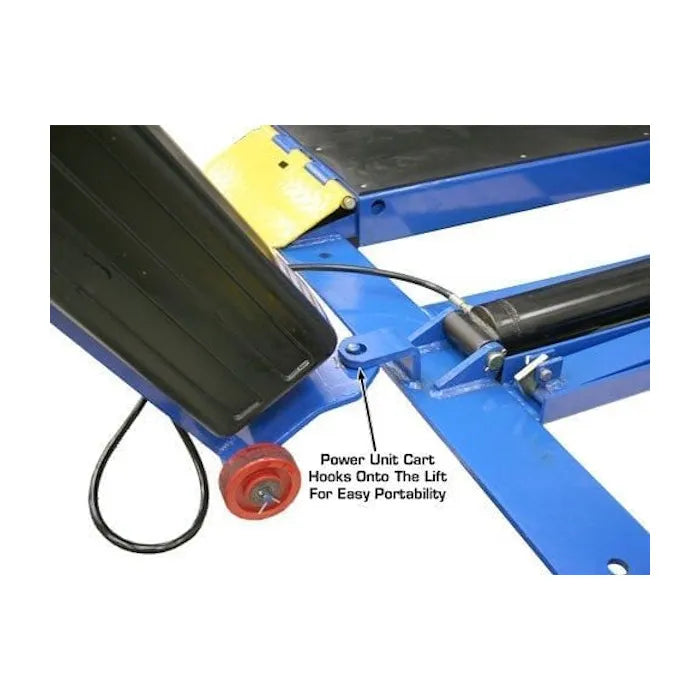 The Atlas LR06 can also be easily moved inside the garage or to an outside concrete apron in front of a bay. The standard wheel kit and the power unit stand work together to allow the operator to roll the LR06 portable low-rise lift across any concrete surface.