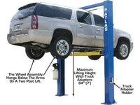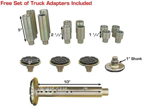 12 Piece Truck Adapter: This lift comes standard with a twelve piece truck adapter set. The twelve piece truck adapter set offers many more lift height combinations than standard two piece truck adapter sets.