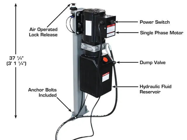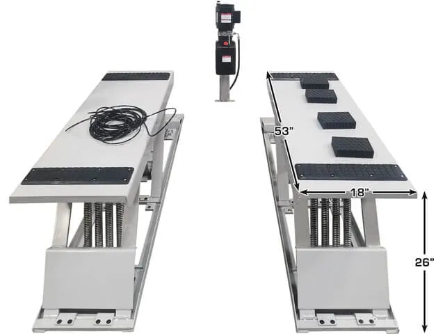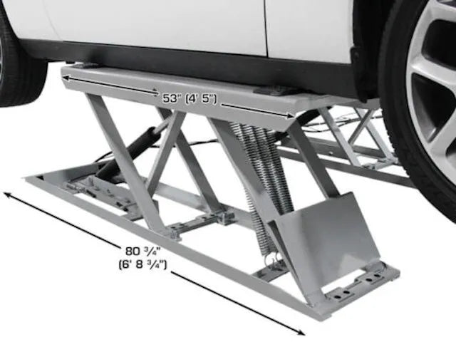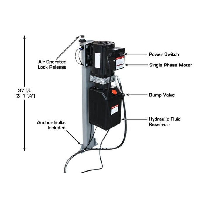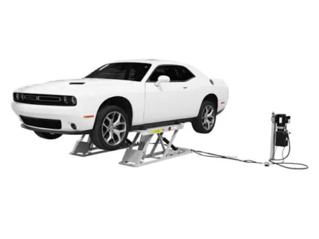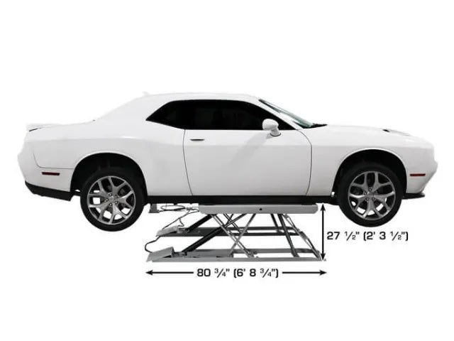 This durable lift is built on a heavy-duty steel frame that provides rock solid support for a lifting base. The dual cylinders deliver enough power to lift a 6,000 lb. vehicle with ease. This lift operates on 110 volt (single phase) electricity.