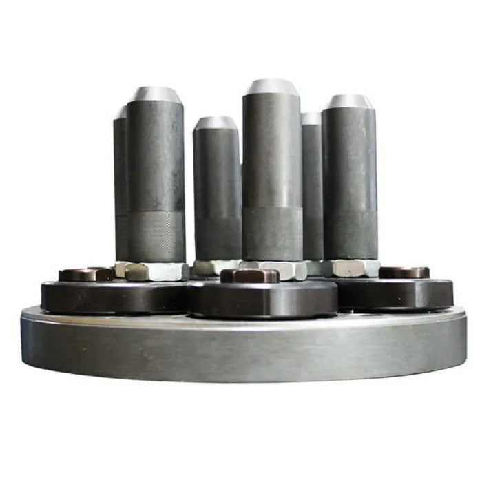 The Atlas Platinum PTC500 Reverse Mount Adapter is for use with the Atlas Platinum PTC500 Center Post Tire Changer. Allows the mounting and demounting aftermarket wheels where the drop center is in the rear of the wheel. Cam-style design allows adjustment of pins for fast set-up. Includes (6) 70 mm x 2-3/4" pins, (6) 100 mm x 4" pins, and lug-hole measuring calipers.