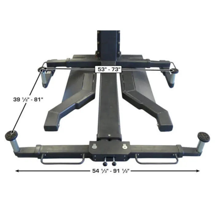 - Distance Between Lifting Pads (Column Side to Column Side): 53" to 73"